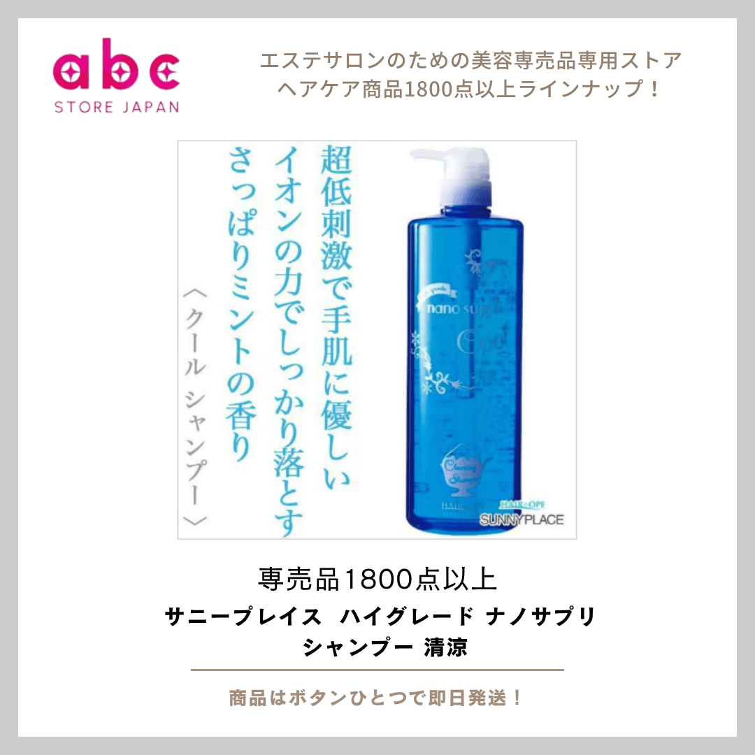 暑い季節や汗をかきやすいシーンにぴったりの「サニープレイス ハイグレード ナノサプリ シャンプー 清涼」。爽快な使用感と、髪と頭皮をいたわる高品質処方で、毎日のシャンプータイムを快適に。abcSTOREJAPANではお得な価格でご購入いただけます。