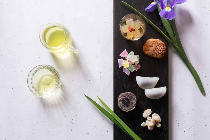 日本旅館「星のや東京」は、2021年5月15日~6月30日の期間、「和菓子の宴」を開催します。江戸時代の文化に倣い、都内銘店の和菓子を食べて厄除け・招福を願うイベントです。旧暦6月16日の儀式「嘉祥(かしょう)」で主役を担った和菓子。江戸時代には、16日にちなみ、1と6を足した数の7 種の菓子が将軍から家臣に与えられ、災いを祓い、幸福を招くという慣習がありました(*1)。その文化に倣い、滞在中のさまざまな場面で和菓子を提供します。縁起物の鯛をかたどった「饅頭」や幸福がくるという花言葉のカキツバタを模した「唐衣(からころも)」など、縁起のよい和菓子を堪能できます。また、お茶や日本酒などとのペアリングも提案します。