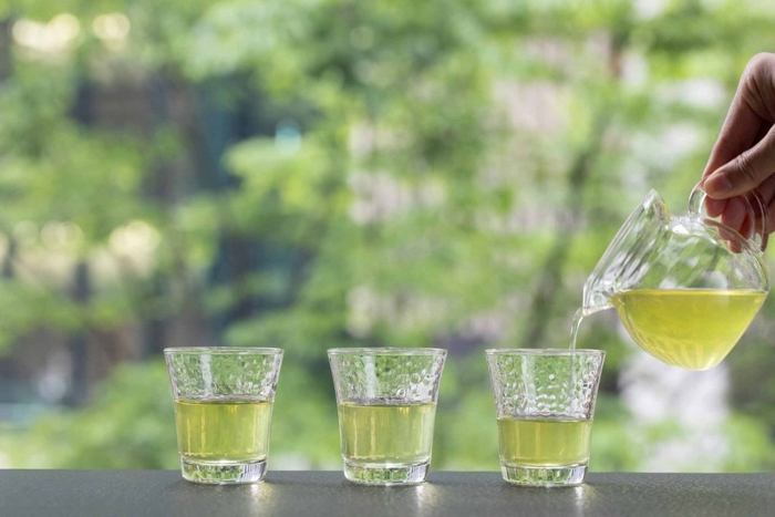 それぞれの和菓子に合う、創業元禄3年・茶と海苔の老舗「山本山」の3種の水出し茶を楽しめます。