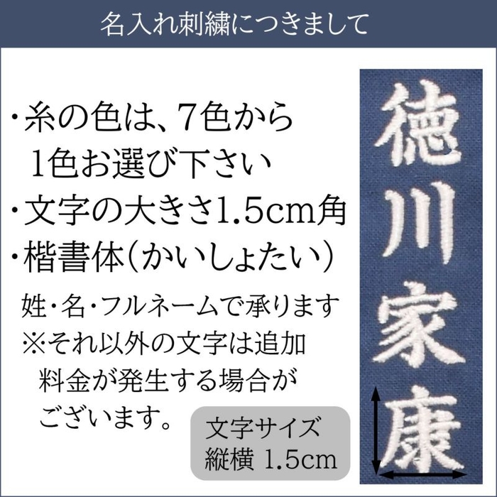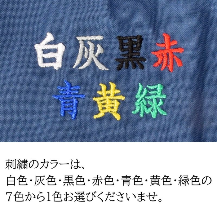刺繍糸の色は白色・灰色・黒色・赤色・青色・黄色・緑色の7色から1色お選びください。