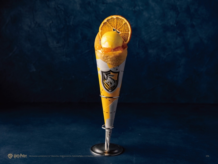 勤勉、謙虚、信頼を司るハッフルパフをイメージしたオレンジとアップルシナモン香るクレープ。自家製のマンダリンオレンジソース、りんごのキャラメリゼがもっちりとしたクレープ生地と相性抜群。ドライオレンジのビターも加わり、大人の味わい。