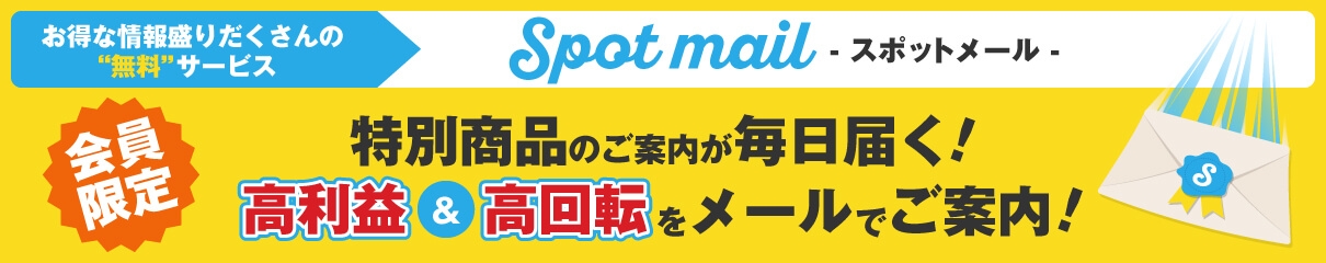 【Amazonで販売する商品をお探しの方にオススメ!】無料会員登録をしていただいた方限定で、売れ筋商品のご案内が毎日届く『スポットメール配信サービス』をはじました。