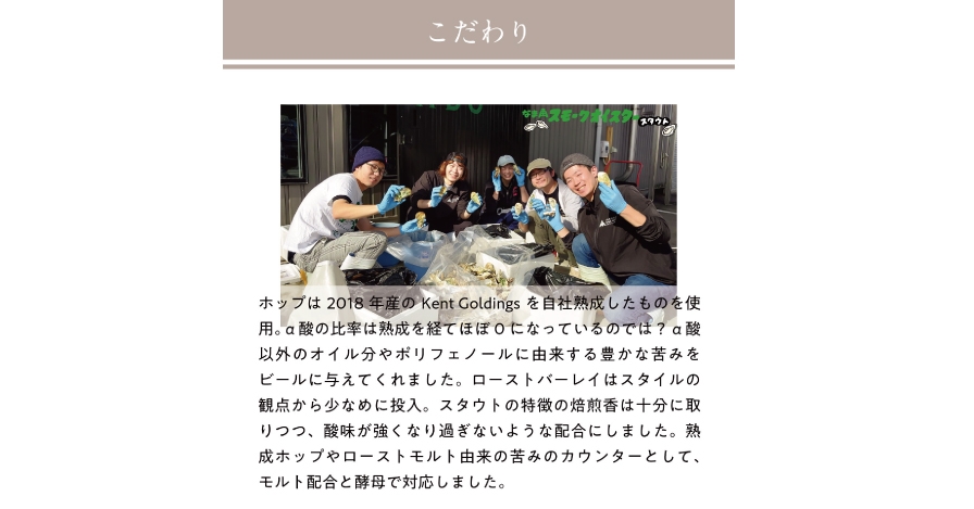 燻製モルトと伊勢志摩産牡蠣殻を使用したスモークオイスタースタウト