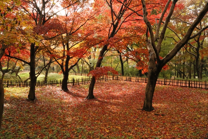 「神代植物公園の紅葉の魅力が伝わる写真」