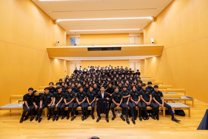 7月4日に行われた3つ目の講演会では、サッカー元日本代表の岡崎慎司特任講師が登壇。「世界で活躍するには結果・成果が求められる」と語り、学生たちに「どれだけ負けても諦めないこと、挑戦し続けることが最強」とエールを送りました。