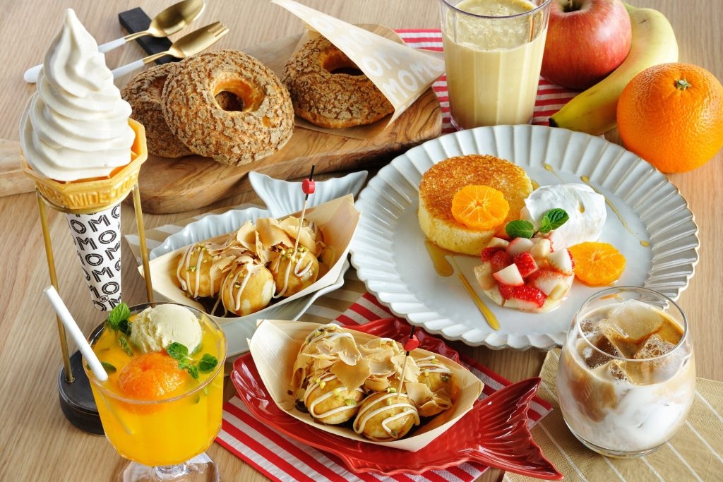 朝食からバータイムまで、一日を通して気軽に利用できる「OMOカフェ&バル」。大阪の喫茶店文化が育んだミックスジュースをソフトクリームにしたり、大阪のソウルフード「たこ焼き」をスイーツにアレンジしたり。定番グルメにひとひねりを加えたメニューをクスっと笑いながら食べるもよし、「ほんまに?!」とツッコミながら写真におさめるのもよし!
