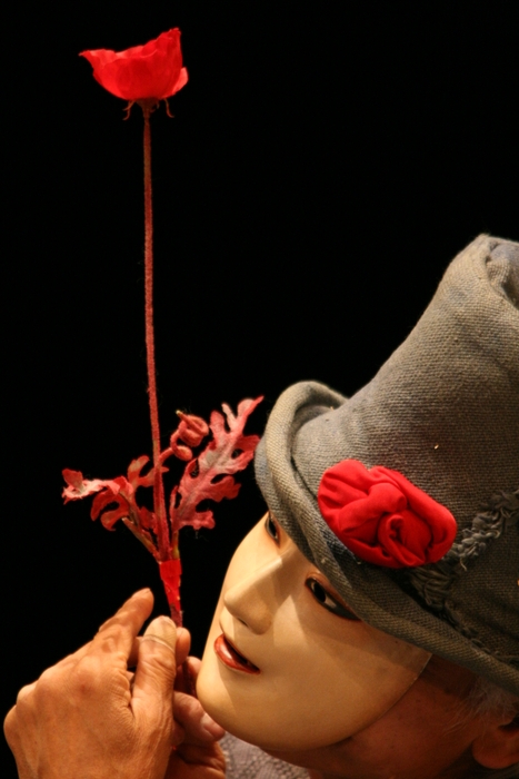 日本の伝統的な能面の製作技法による、能面作家ふじもりふじお氏の手になる陰と陽の創作面二面を使い分けて、フルートの生演奏により演じる、日本では他に類を見ない舞台です。生きることの不条理を描いた作品は国内外で高い評価を得ています。