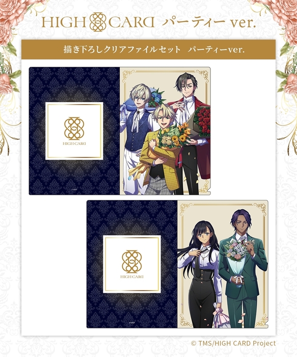 TVアニメ「HIGH CARD」より、華やかなパーティー衣装の描き下ろしイラストを使用したクリアファイルセットが登場!