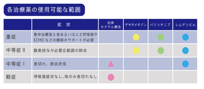 ■認可済みの新型コロナウイルス治療薬は、どの程度の症状に対応する?