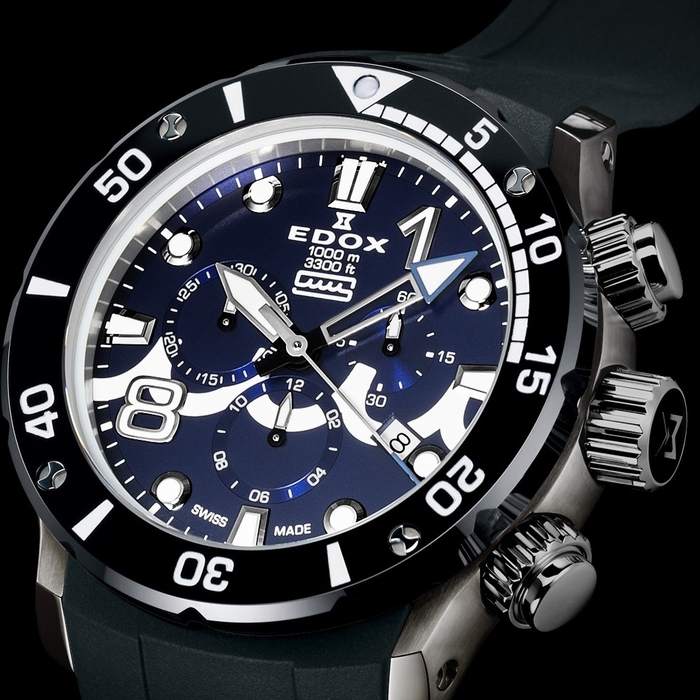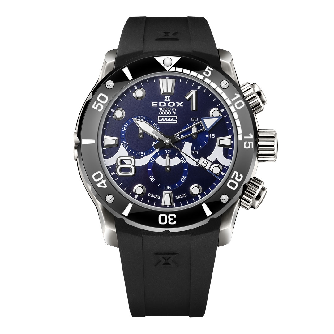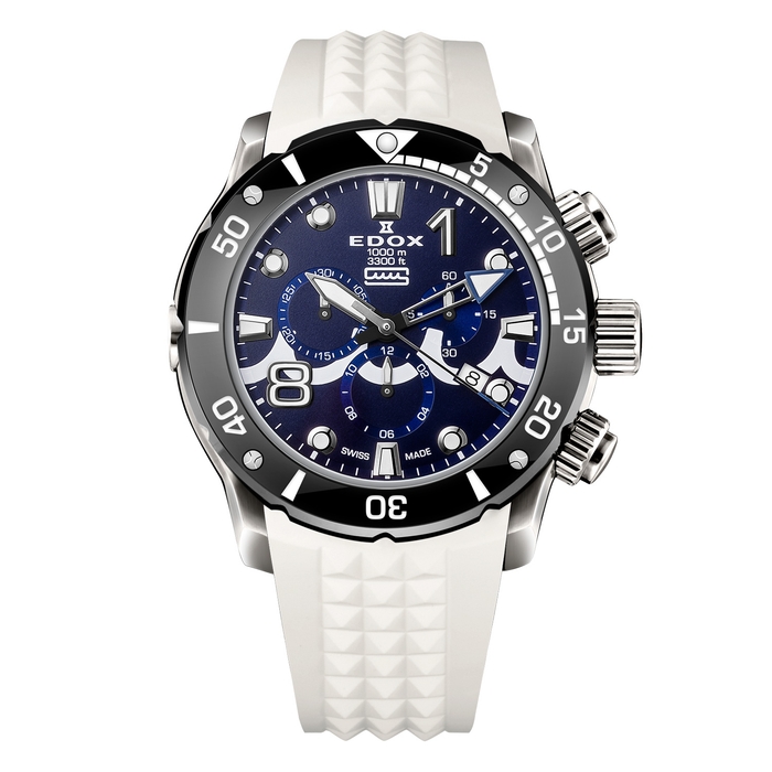 最高速度が200km/hを超え、海のF1とも称されるパワーボートレースのダイナミックかつラグジュアリーな世界観を投影した、エドックスのフラッグシップコレクションです。厚さ3.5mm以上の重厚なセラミックベゼルや300~1000m防水を標準スペックとして備え、素材や仕上げへの一切の妥協を許さず審美性を追求することで、タフネスとエレガンスを両立しています。