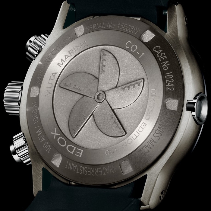 「チャンピオン」にこだわりを持つエドックスと、「変化」を追求するムータ・マリンのエッセンスが融合した、オリジナルの文字盤です。