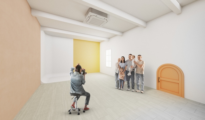 異なる世界観を持つ2つの撮影スタジオを備えた大型店舗。3世代そろっての記念撮影や、ペットとの撮影など、さまざまなシーンに対応します。