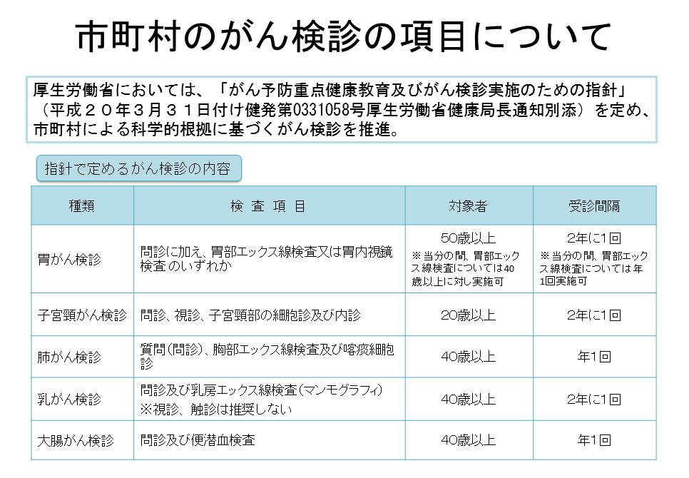 出典 厚生労働省:がん検診の種類