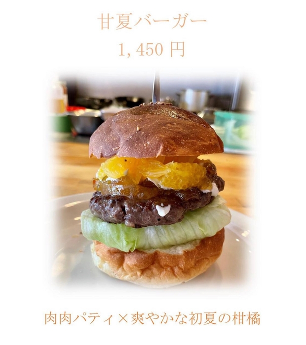 ブロック肉から丁寧に筋・脂を取り除いてハンドチョップし、つなぎを使わないビーフ 100%のゴツゴツパティとフルーツの組み合わせは甘味と酸味が相まって食欲を刺激する逸品となっております。甘酸っぱさとほろ苦さのある今が旬の爽やかな甘夏とマスカルポーネ、マーマレードジャムの組み合わせは、フレンチでも肉料理と柑橘類を合わせるように相性が良い組み合わせなので、ぜひお試しください!