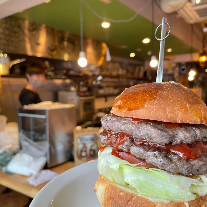 ほぼステーキ肉!【店内肉磨き】パティが好評!西早稲田の間借りバーガーRoute66がフルーツ系新商品を発売!