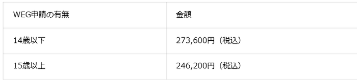※14歳以下の方はWEG申請手続きが必要となるため、代行費用が発生いたします。