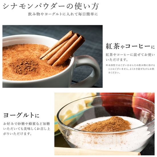 セイロンシナモンは健康面でも優れています。1日0.6~3gの摂取がおすすめされており、お湯にティースプーン1杯程度を入れて飲むと、体内を温めながら有効成分を摂り入れることができます。