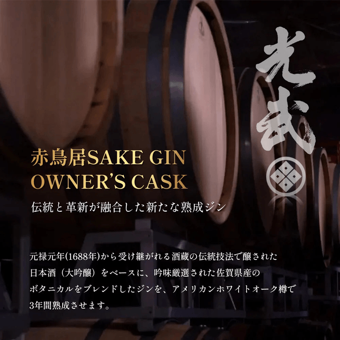 元禄元年(1688年)から受け継がれる酒蔵の伝統技法で醸された日本酒(大吟醸)をベースに、吟味厳選された佐賀県産のボタニカル(ジュニバーバリー、オレンジピール、レモンピール)をブレンドしたジンを、アメリカンホワイトオーク樽で3年間熟成させます。日本酒ならではの芳醇な口当たりと、ジンらしい爽やかな香りを持つこの特別なジンは、熟成を経て、さらに深く豊かな風味へと昇華します。3年間の熟成を通じて、カスクオーナー様とともに、これまでにない新しいジンの価値を創り上げます。