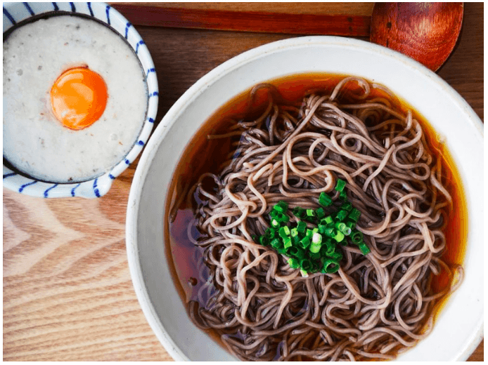 自然薯の美味しさを手軽に楽しめるとろろそば。とろろは別皿に盛り付けているので、お好みのタイミング、お好みの量でお蕎麦に加えてお召し上がりください。