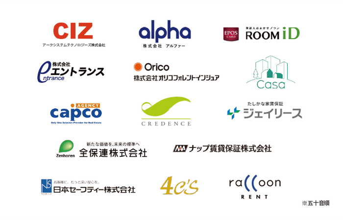 現在、以下の家賃保証会社14社と提携を行っています。(2020年10月19日現在)