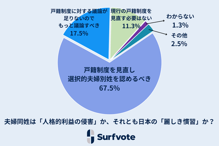 「戸籍制度を見直し、選択的夫婦別姓を認めるべきである」が67.5%で最多
