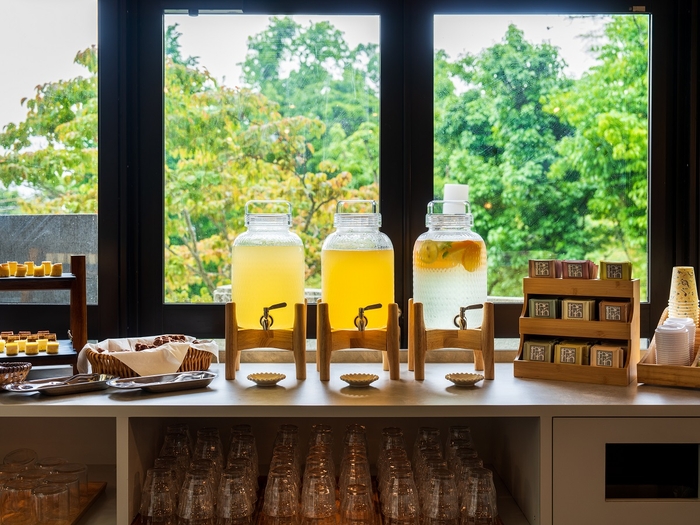 ・ケーキや新感覚“焚火スイーツ”で皆様をお出迎え!美容と健康に嬉しいデトックスウォーターや紅茶など約20種類(チェックイン時~18時)