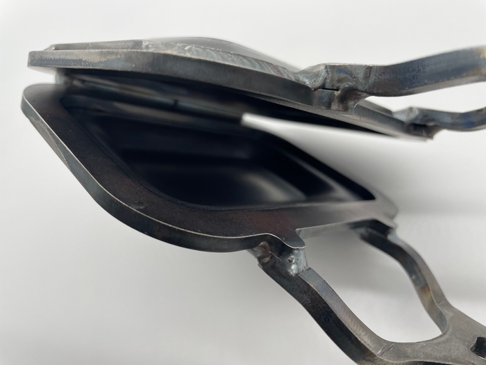 一般的なホットサンドメーカーは、フッ素やテフロン、シリコンなどのコーティングがされていますが、これらは炭火や焚火で使用すると傷んで剥がれてしまうため利用することはできませんが、黒皮極鉄プロ サンドは、直火でもガンガン使うことができます。
