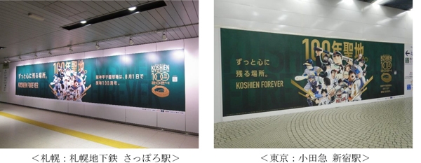 札幌、東京、名古屋、福岡で阪神甲子園球場100周年を紹介するキービジュアルを掲出中。