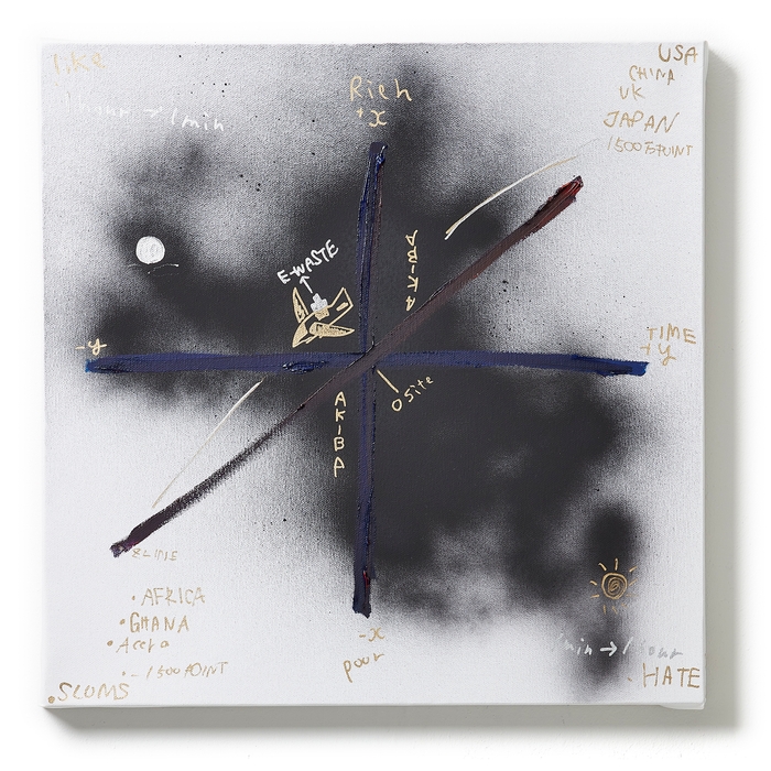 ガーナの人種、ゴミ問題の闇が深ければ深いほど、アートにしたときにプラスの価値が高くなる。もし秋葉原の中古家電でアートをつくっても、価値はさほどないことがこの図式で見て取れる。