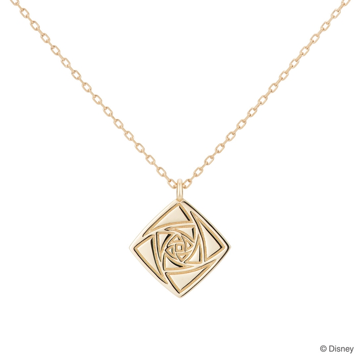 ゴールドのプレートにバラの花が開き、もう片面にはヒロイン「アーシャ」と「スター」のシルエットが刻印されたリバーシブルデザイン。願う事の大切さや行動する勇気をいつも胸に感じられそう。