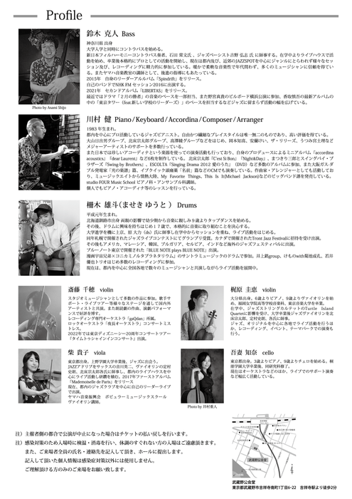 ピアノトリオと弦楽四重奏で奏でるジャズの名曲たち この公演のための特別なアレンジで二つの異なるジャンルの融合をお楽しみ下さい