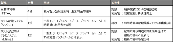 当社が提供する「FIT-A」は温浴施設に特化した自動精算機で、館内の各施設で発生した追加料金をリストバンドで管理し、退館時にまとめて精算する運用が可能です。精算業務におけるスタッフの負担軽減や利用客の混雑緩和などの効果に期待いただき、導入にいたりました。「FIT-A」に加え、「シリウスi」や「d.time」、グループ会社の株式会社USENが提供するAI搭載の店舗向けBGMサービス「USEN MUSIC シリーズ」や業務用ロボット(配膳・清掃・運搬)もあわせて導入することで、施設運営を総合的に支援、ホスピタリティの向上にも貢献してまいります。