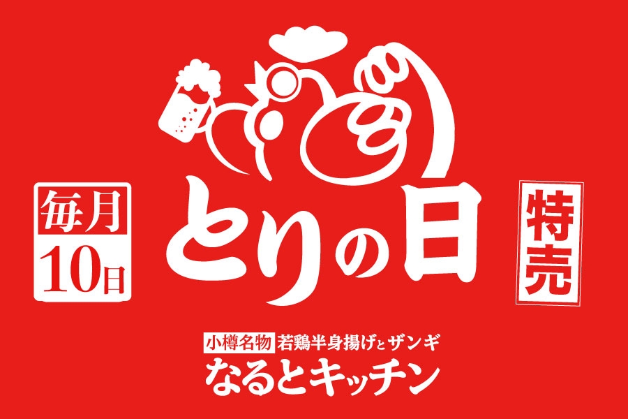 2月10日はとりの日!小樽名物「若鶏半身揚げ」なるとキッチン通常価格から100円引き!
