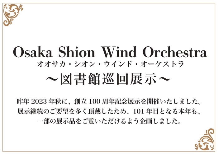 オオサカ・シオン・ウインド・オーケストラ「図書館巡回展示」、大阪市立東淀川図書館で開催!100年の歴史の一部をご覧ください!