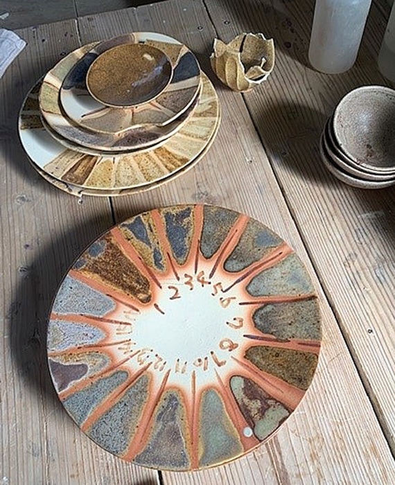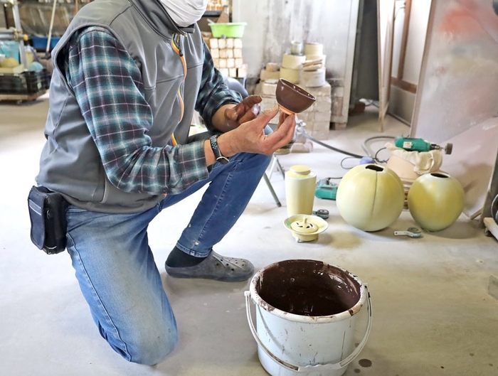 京都で長年、灰釉のスペシャリストとして活躍されている大日窯 竹村繁男氏は、自身で育てた向日葵の他、葡萄、無花果、枇杷など様々な草木で釉薬を作り出し作品を製作されています。今回のプロジェクトの為に茶葉の灰を一から研究し、生まれた釉薬を使い考案された器の製作を、竹村氏の陶房である大日窯にご協力いただきました。