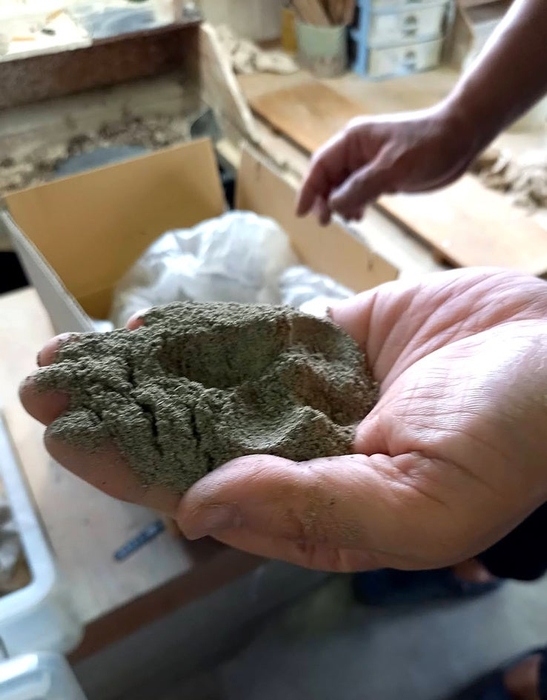 - 灰を篩(ふるい)にかけ、水にさらし灰汁(あく)を抜く作業を4~5日繰り返します。