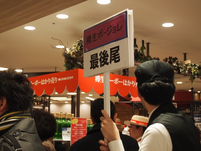 2003年「樽生ヌーボー®︎」は、阪急うめだ本店・宝塚阪急での試飲販売からスタート。その年は連日終業時刻まで行列がなくならず、最終日はなんと午前11時には完売するほどの人気商品となりました。そこから試飲販売場所を増やし、毎年たくさんの方にご愛飲いただくボジョレ・ヌーボーになりました。