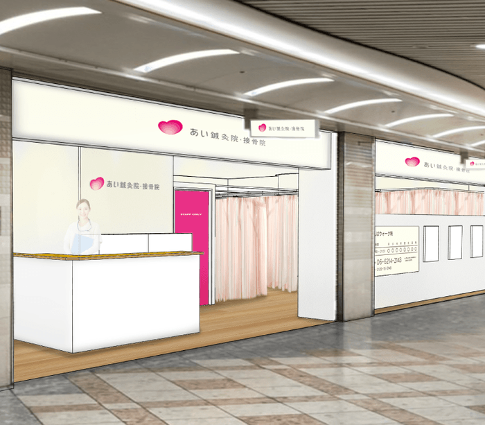 地域の皆様とともに成長する、「あい鍼灸院・接骨院」を大阪・京都・兵庫・東京で30院、リラクゼーション・マッサージ「らくたす」を1店舗運営する、株式会社あい・グループ(本社:大阪府大阪市、代表取締役:伊藤 勇二、https://www.ai-medical.co.jp/)は、「あい鍼灸院・接骨院 なんばウォーク院」(https://www.ai-medical.co.jp/ad/walk/)を移転オープンします。