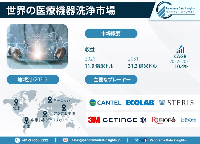 最新の報告によれば、2021年に約119億ドルだった医療機器のクリーニング市場は、2031年までに310億3,000万ドルに達すると予測されています。市場の拡大は2022年から2031年の期間で年平均成長率(CAGR)10.4%で進行すると予想されます。