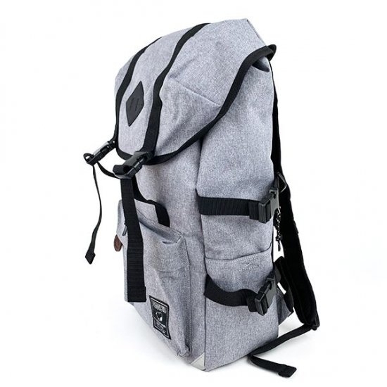 こちらは、デザインが少し違うタイプです。カラーはネイビーで、収納力もアップしています。バックル遣いもあちこちに見られて、リュックらしさがプラスされていますよね。