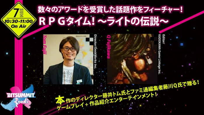 8月7日(日)10時30分からはステージにて、『RPGタイム!』ディレクターの藤井トムと「週刊ファミ通」編集者の藤川Qによるスペシャルステージも実施予定ですので、ぜひご覧ください。