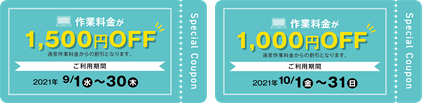 ※各クーポンの有効期限内に作業を実施したお客さまに限りご利用いただけます。