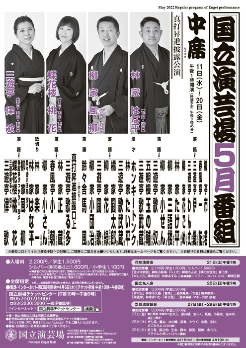 落語協会真打昇進披露公演 国立演芸場「令和4年5月中席公演」出演者決定 カンフェティでチケット発売