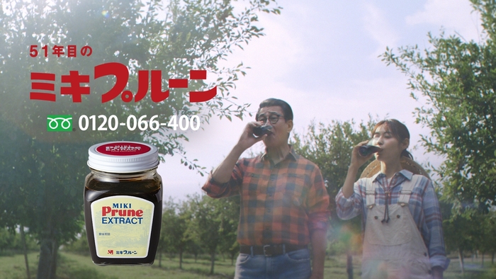 本CMで5作品目の共演となる中井貴一さんと瀧本美織さん。発売から51年目と半世紀を超え、今でも多くのファンを持つミキプルーンが手間暇を惜しまず育てられたプルーンからできていることを、お二人の少しコミカルなやりとりから伝えるCMとなっています。