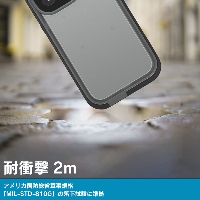 防水・防塵におけるJIS規格 最上級「IP68」と、アメリカ国防総省軍事規格「MIL-STD-810G」にも準拠したiPhone 14シリーズ対応ケースです。