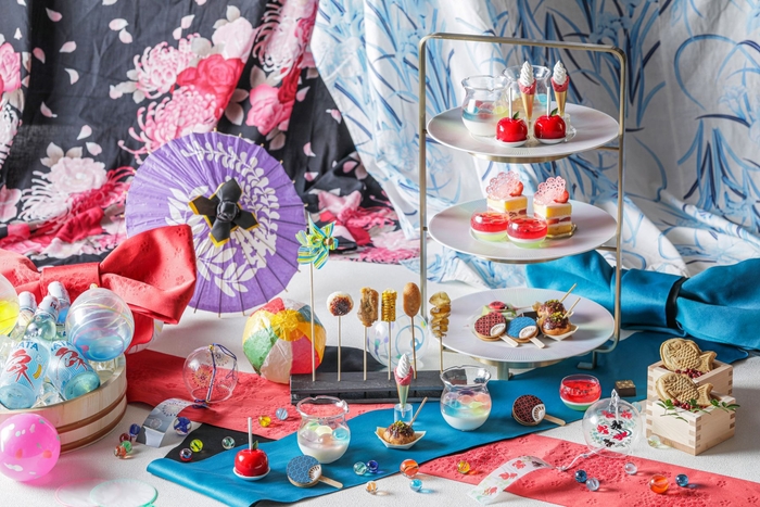 今回の期間限定アフタヌーンティーは、“夏祭り”がテーマ。コロナ渦の今、「夏祭りが開催されていない」「浴衣を着て出かけたいけどできない」「夏休みをたのしみたい」という方向けに「夏祭りに来た気分を少しでも味わって欲しい」「浴衣を着る機会を作りたい」という想いから「浴衣de“屋台スイーツ”~色彩~」を期間限定販売いたします。