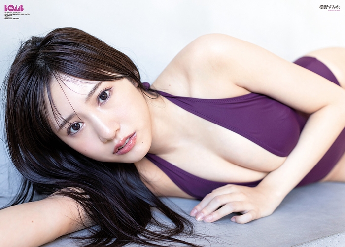 ★通常版の表紙を飾るのは美女軍団『ゼロイチファミリア』での復活を果たした横野すみれ。久しぶりのボム水着グラビアでは、ピンクコーデビキニの甘い世界観から、ベッドでの白レースビキニの限界セクシー、そしてヘルシーなタイトデニム姿、胸元が大きく開いたワンピース水着まで、見せ所満載の18ページ! ヒップラインの美しさは必見です。
