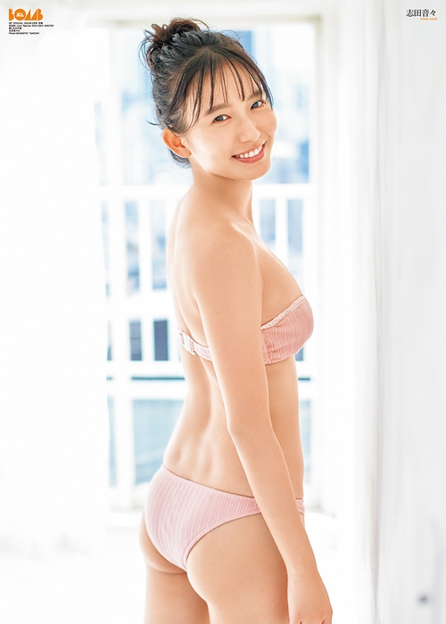 ★『仮面ライダーギーツ』にレギュラー出演と、’22年は飛躍の一年となった志田音々が巻末グラビアに登場。彼女のボム水着グラビアではおなじみの猫をモチーフにしたキャラクターをテーマにしたグラビアを! 赤いリボン&赤白のボーダー水着には真っ白なモヘアニットを。小さめピンクチューブ水着では、りんご風呂初体験。透け感のあるナイトドレスにはベロアのブルービキニを。可愛さをギュッと詰め込んだ16ページです!