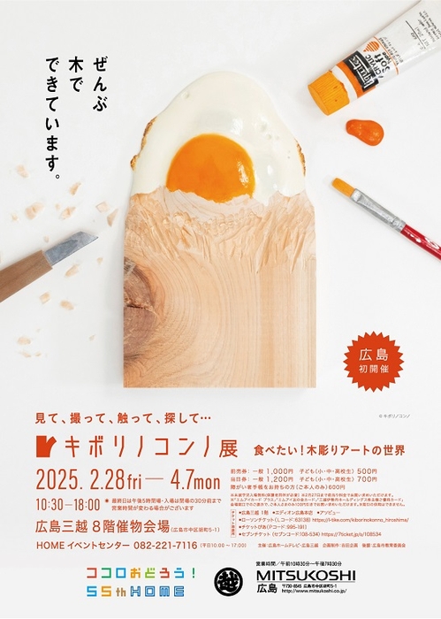 株式会社広島ホームテレビ(所在地:広島県広島市)が主催で2月28日(金)~4月7日(月)の期間、広島三越 8階催物会場で開催する「キボリノコンノ展」。
