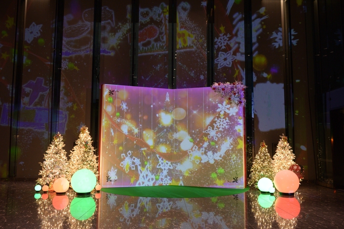 巨大絵本に見立てたスクリーンに 園児が描いたイラストを投影! 「住友不動産東京三田ガーデンタワー」で 12月25日(月)まで、クリスマスイベントを開催。 日比谷花壇が装飾を担当しました。